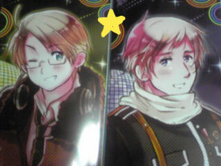 余ったメリカちゃんは誰と並べるかと迷って、フランス兄ちゃんは普通過ぎるよな~ここは冷戦で怖い笑顔対決言って貰おう★と、見ているだけで白々しい笑顔が怖いお2人です~(´ρ`)